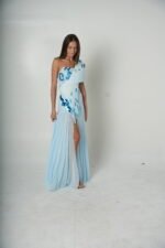 This gown is an ethereal, statement making piece that blends elegance with artistic design. created from soft tulle flowing fabric,