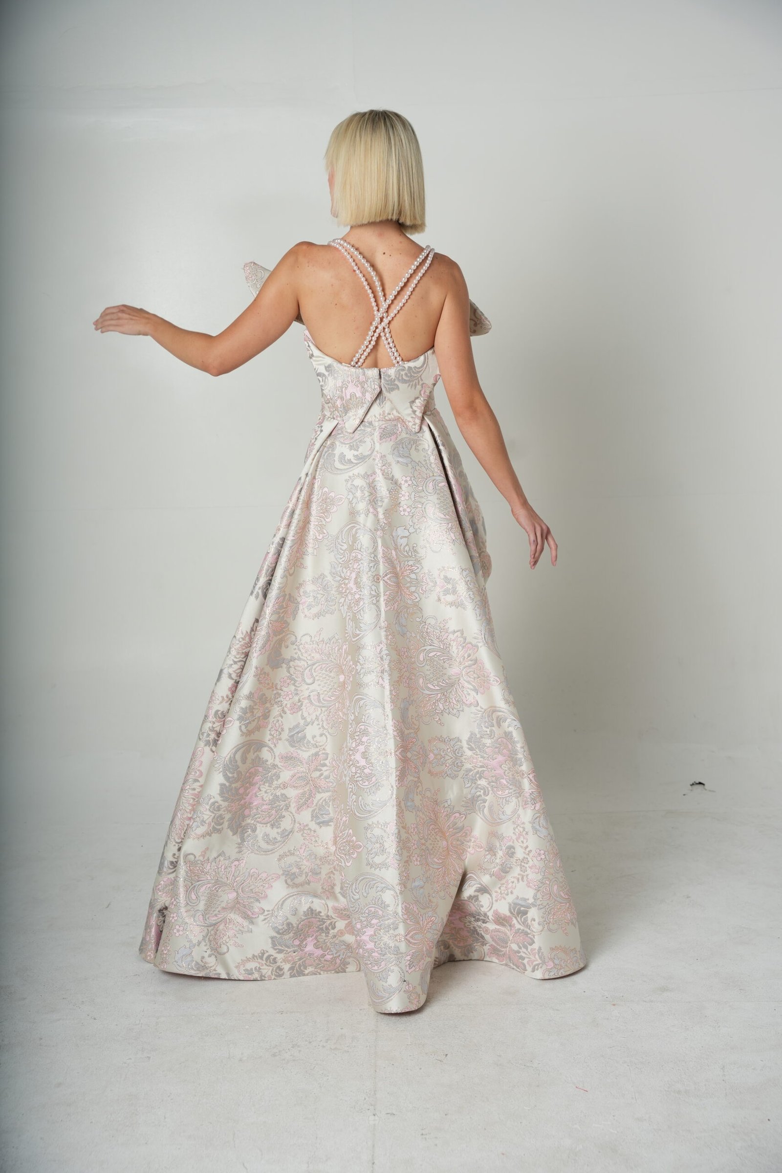 A vision of ethereal elegance, this couture gown is crafted for the woman who embodies grace and quiet power. Rendered